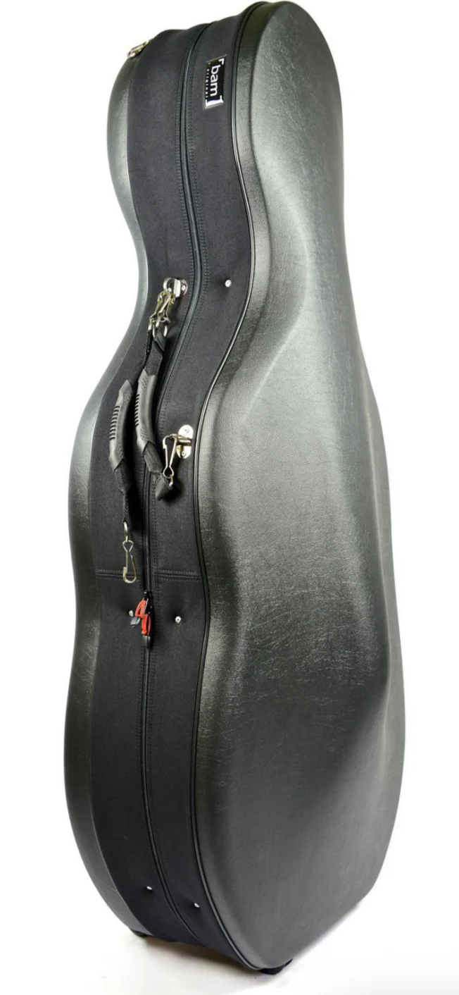 - Extrathick layer of high density polyurethane foam injected around a mold taking on the shape of the cello case and protecting it against shocks