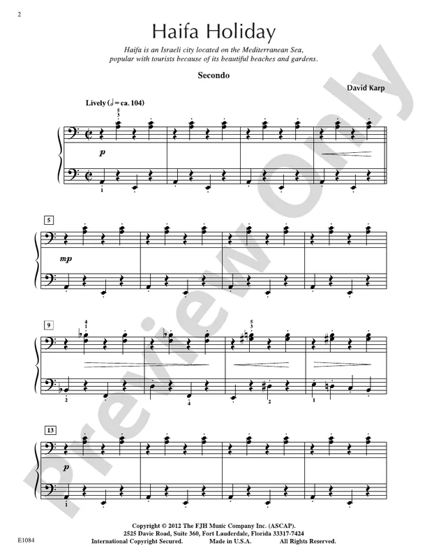 Haifa Holiday - Piano (Digital Download)